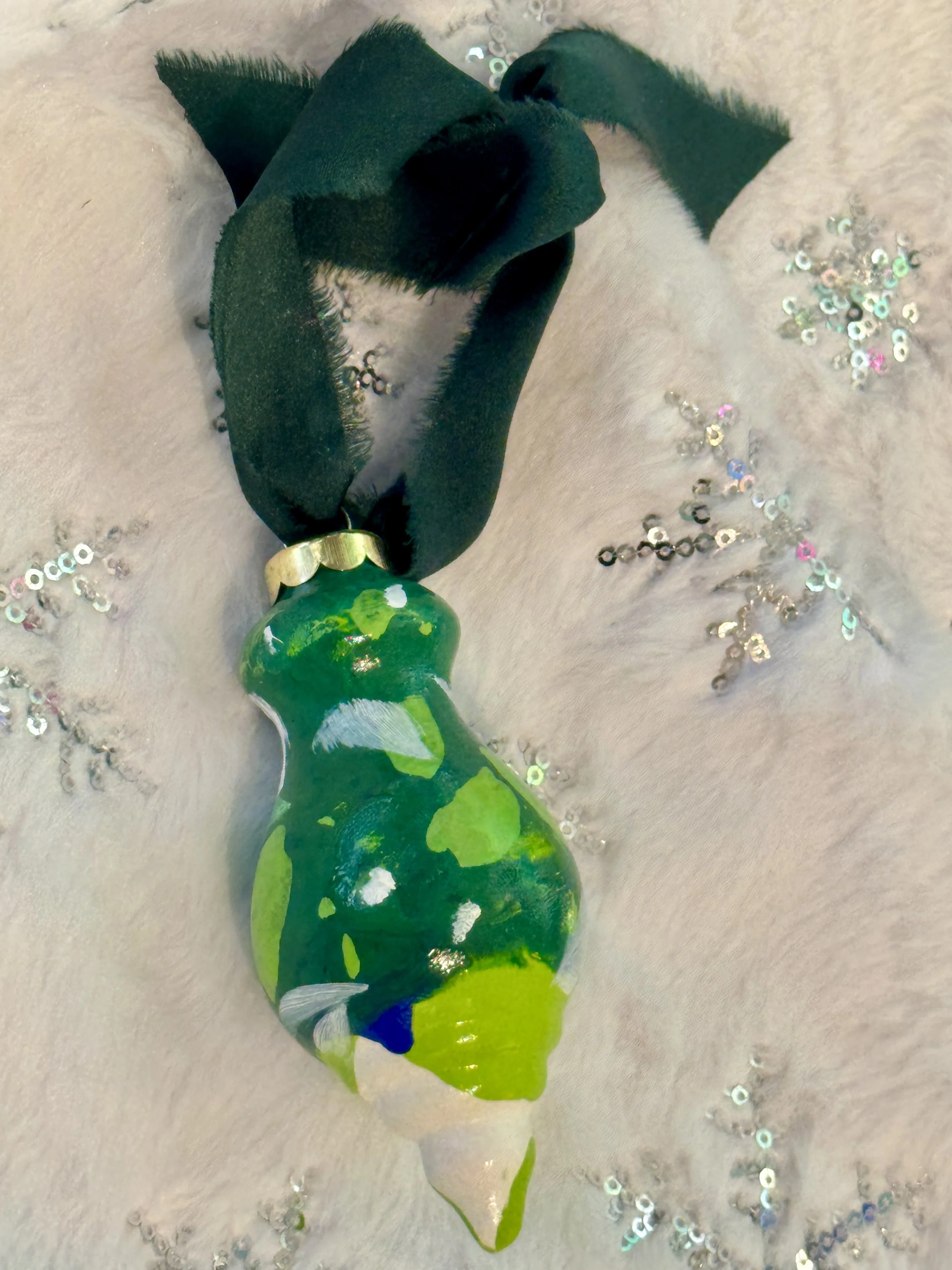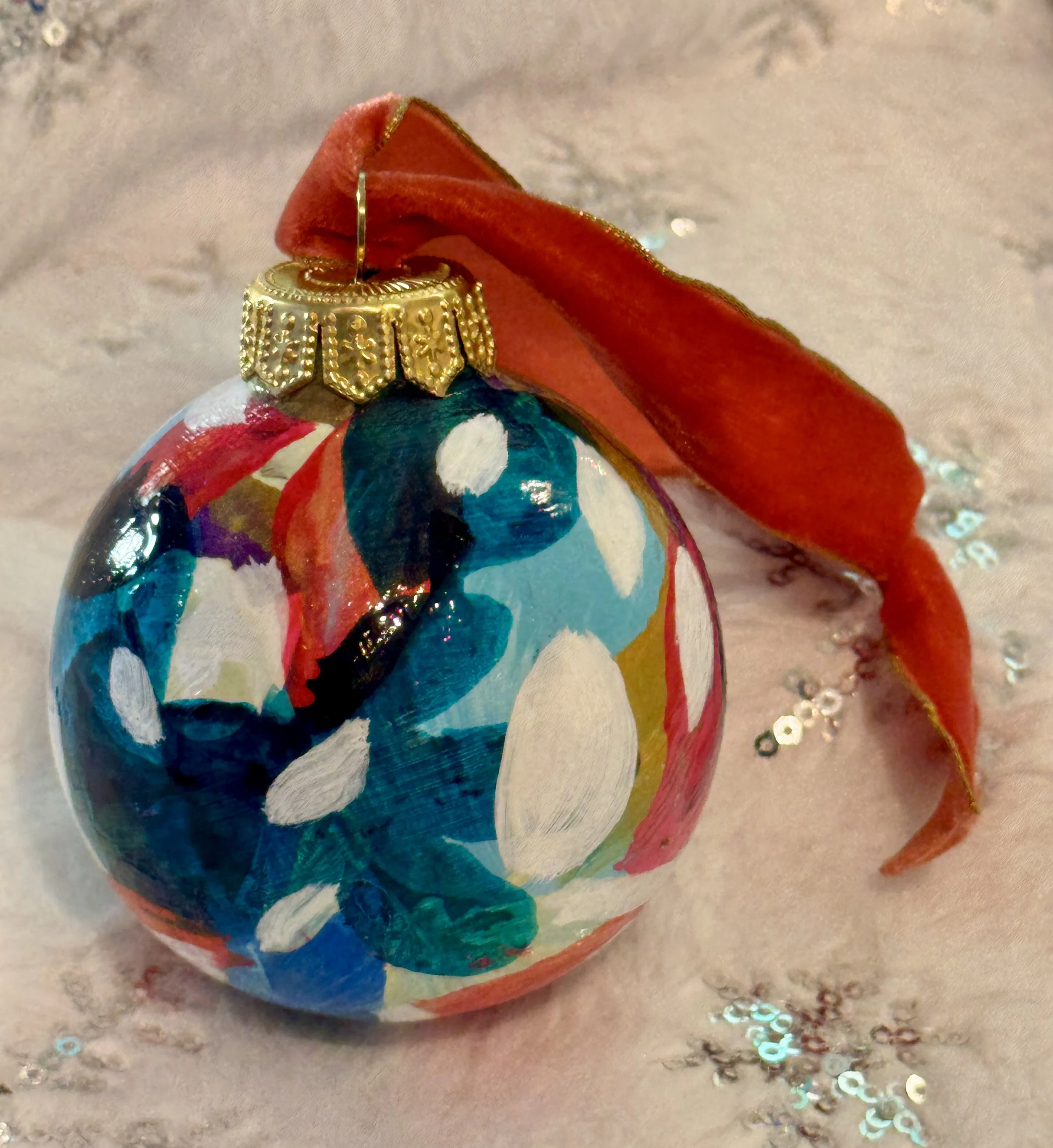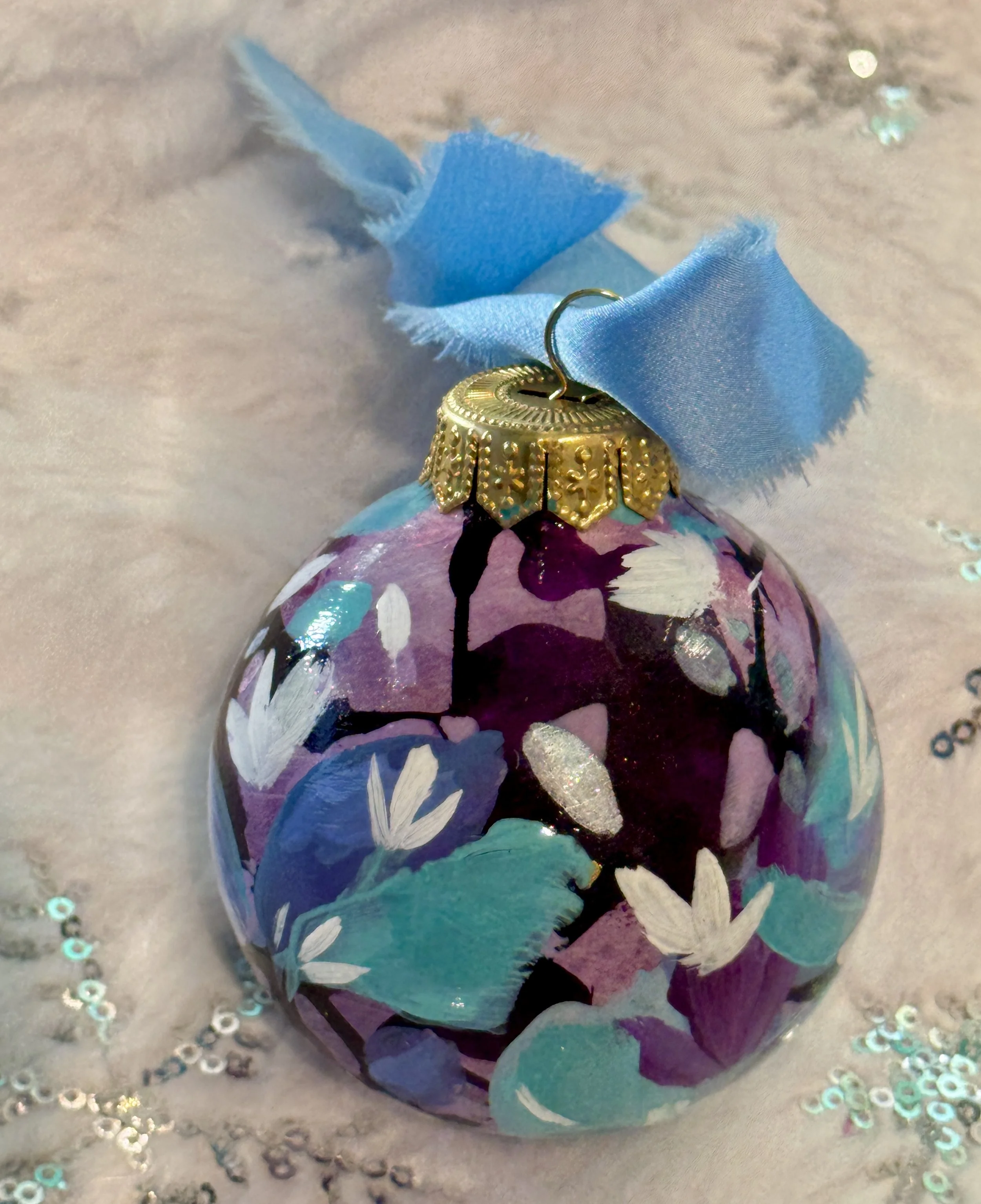 Each year, I carve out time to make something more intimate—unique, affordable artworks that carry the same spirit as my larger paintings, distilled into small, shining forms. These hand-painted ornaments are tiny labors of love, each one shaped slowly by layers of color, movement, and quiet magic. No two will ever be the same.