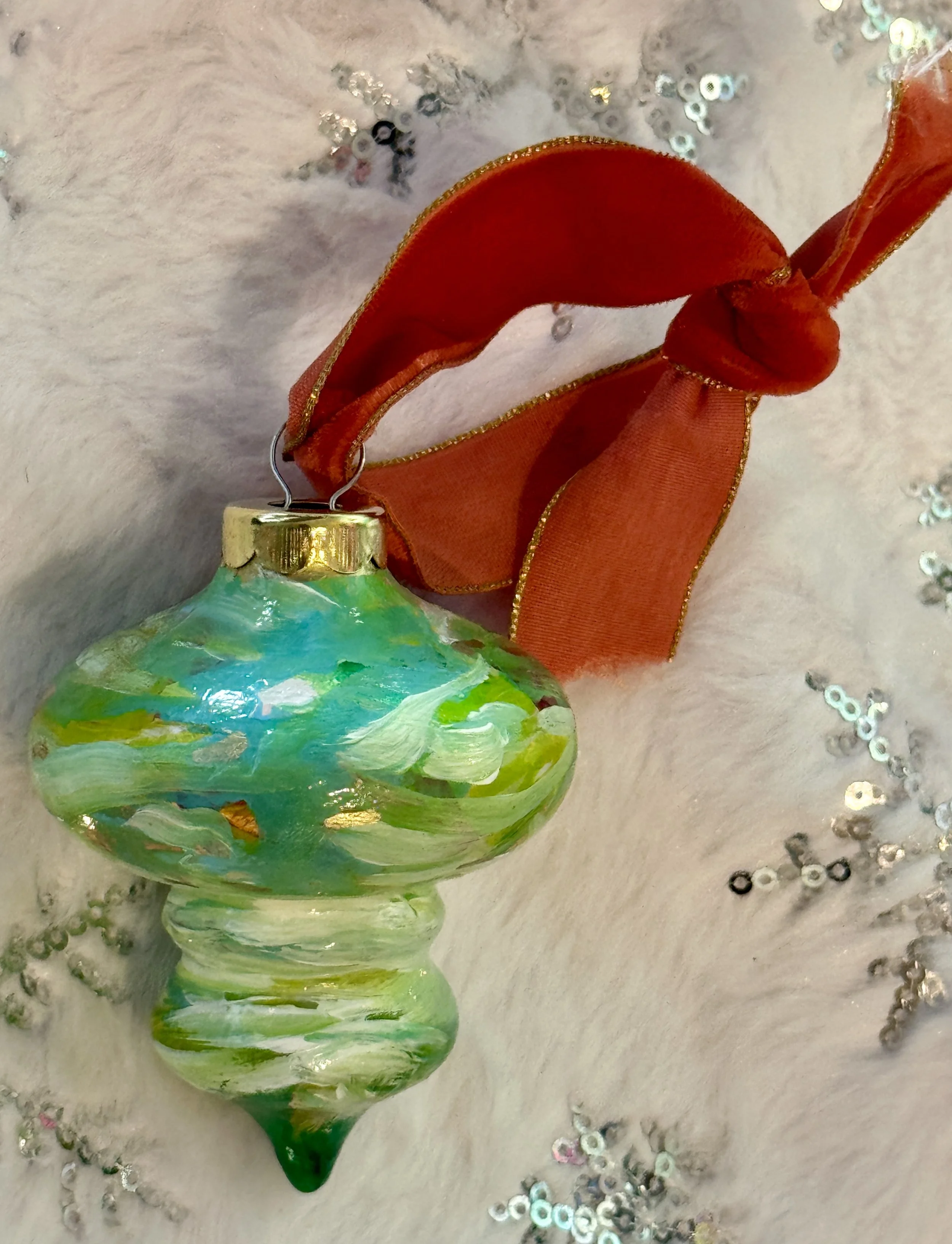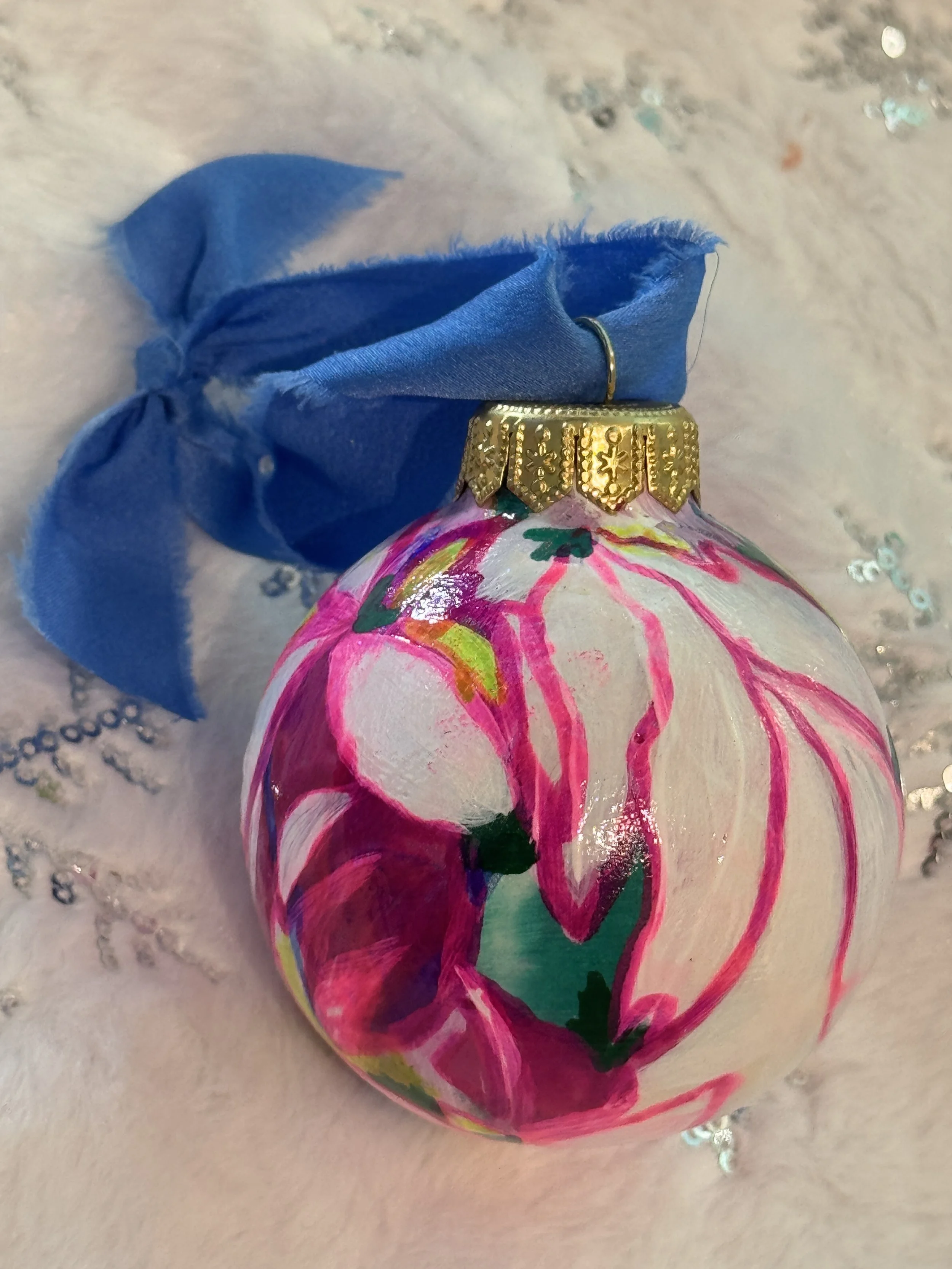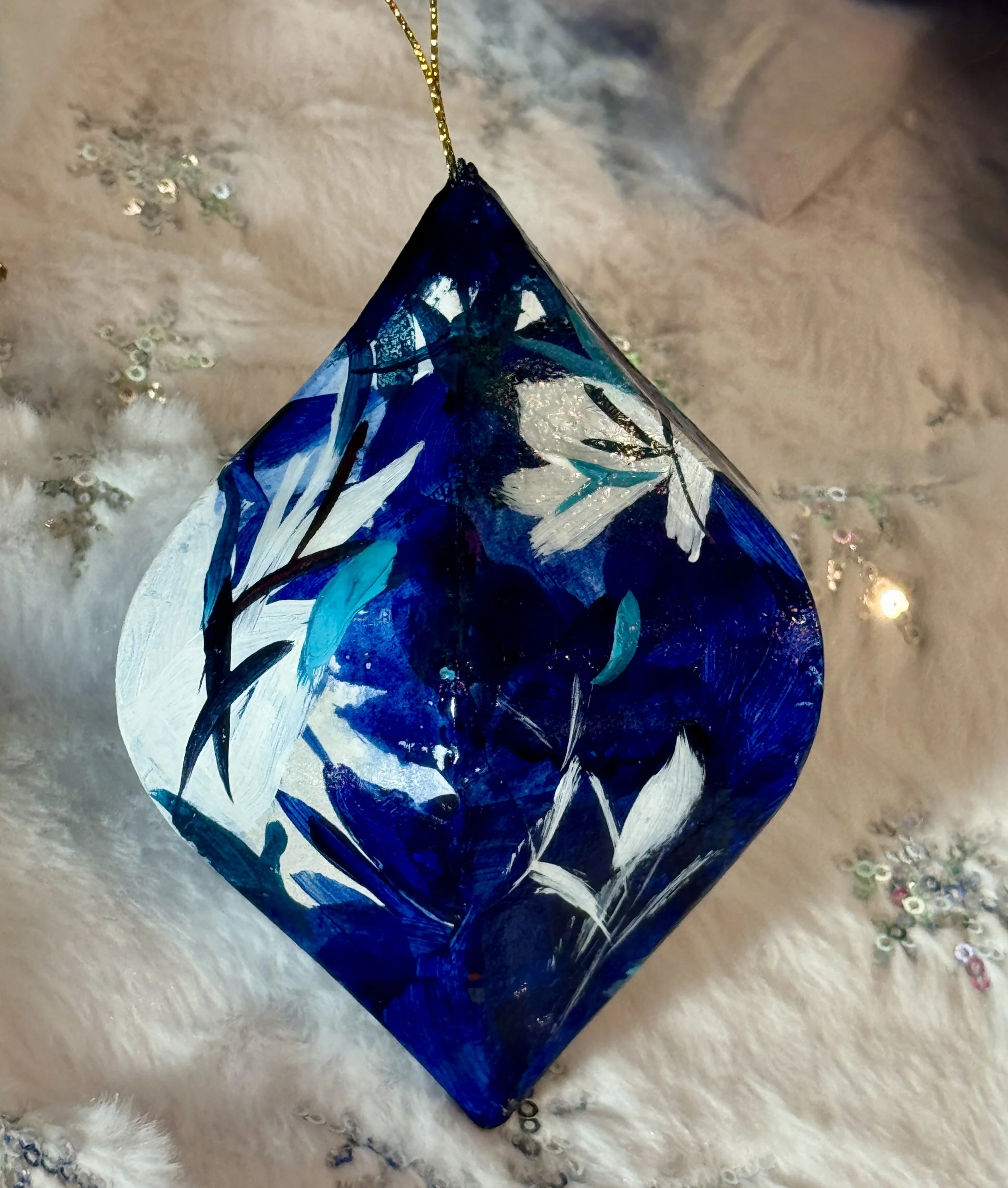 Each year, I carve out time to make something more intimate—unique, affordable artworks that carry the same spirit as my larger paintings, distilled into small, shining forms. These hand-painted ornaments are tiny labors of love, each one shaped slowly by layers of color, movement, and quiet magic. No two will ever be the same.